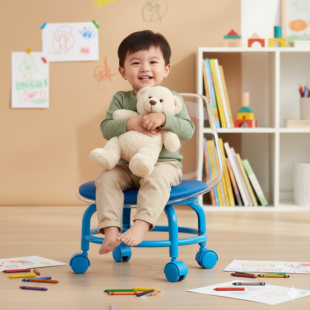 This kids chair on wheels is built for toddlers aged 2-4 years. Its sturdy, child-safe body, comfortable cushioned seat, and smooth 360° wheels make it perfect for play, meals, or learning time. Lightweight yet durable, it’s designed for everyday use and easy cleaning.